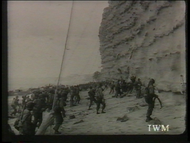 The following film, kindly lent by the Imperial War Museum, London, shows an American war time exercise that took place on Burton Cliffs. The film shows soldiers landing on the beach from LCT's , firing rockets up the cliff attached to rope ladders. the soldiers then climb the cliff and follow up with a large extenssion ladder that allows more soldiers to climb the cliff faster.