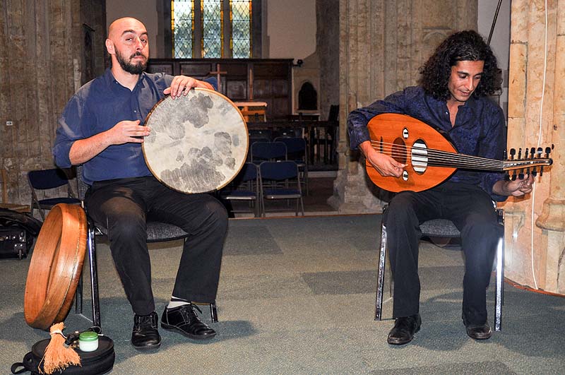 The talented twin sisters , Laura and Charlotte Carrivick, with John Breese (double Bass), gave the first half of the evening concert. They played and sang enchanting bluegrass music and folk songs, with great virtuosity on many different stringed instruments. They were followed by bewitching Arab music played on the oud (Arabic lute) by Khyam Allami with Vasilis Sarikis on percussion. Allami is a renowned master of the instrument who has studied Arabic and Iraqui music widely and his performance held the audience in a thrall.